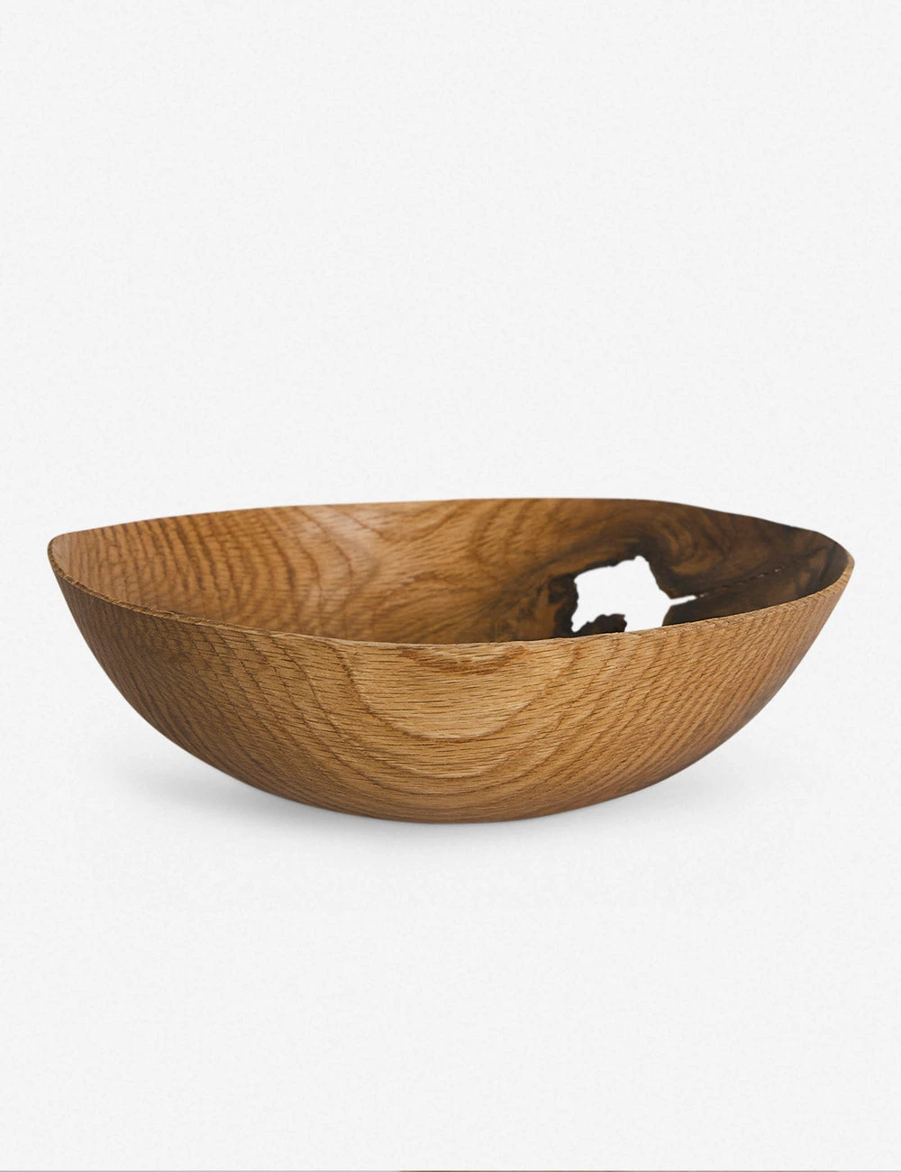 Namu Home Goods celebrates the raw beauty of nature, unearthing materials and traditional handcraft processes that offer uniquely organic qualities. This warm ash wood bowl is rubbed in an oiled finish and features a naturally formed hole for a distinctive textural character.