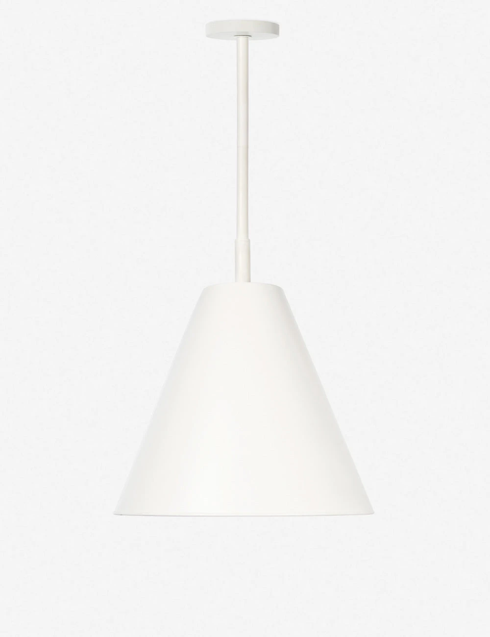 An elemental pendant light made for the elements. The sleek cone shade offers stunning minimalist impact in a damp-rated hanging light design for a polished touch in a covered entrance or outdoor lounge.