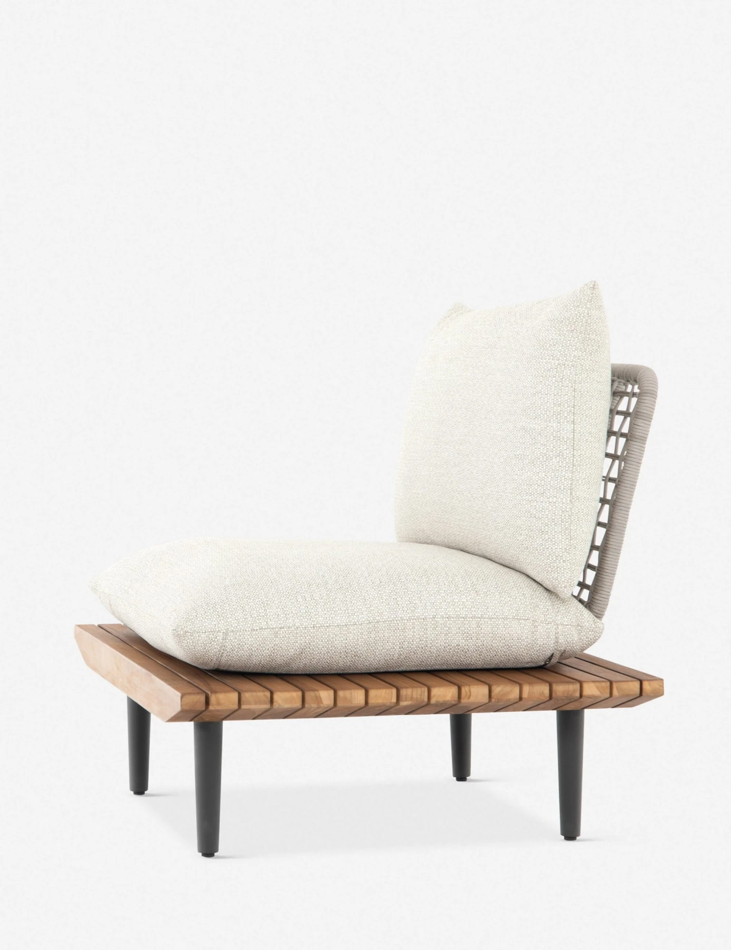 This accent chair is a chic, artful take on outdoor styling with its platform base extending beyond its cushion to provide an extra surface to place books, plates, and drinks. Its slatted, FSC-certified teak base is topped with plush, sandy-colored cushions, so we love the idea of using this occasional chair to relax poolside, on your terrace, or even in your sunroom.