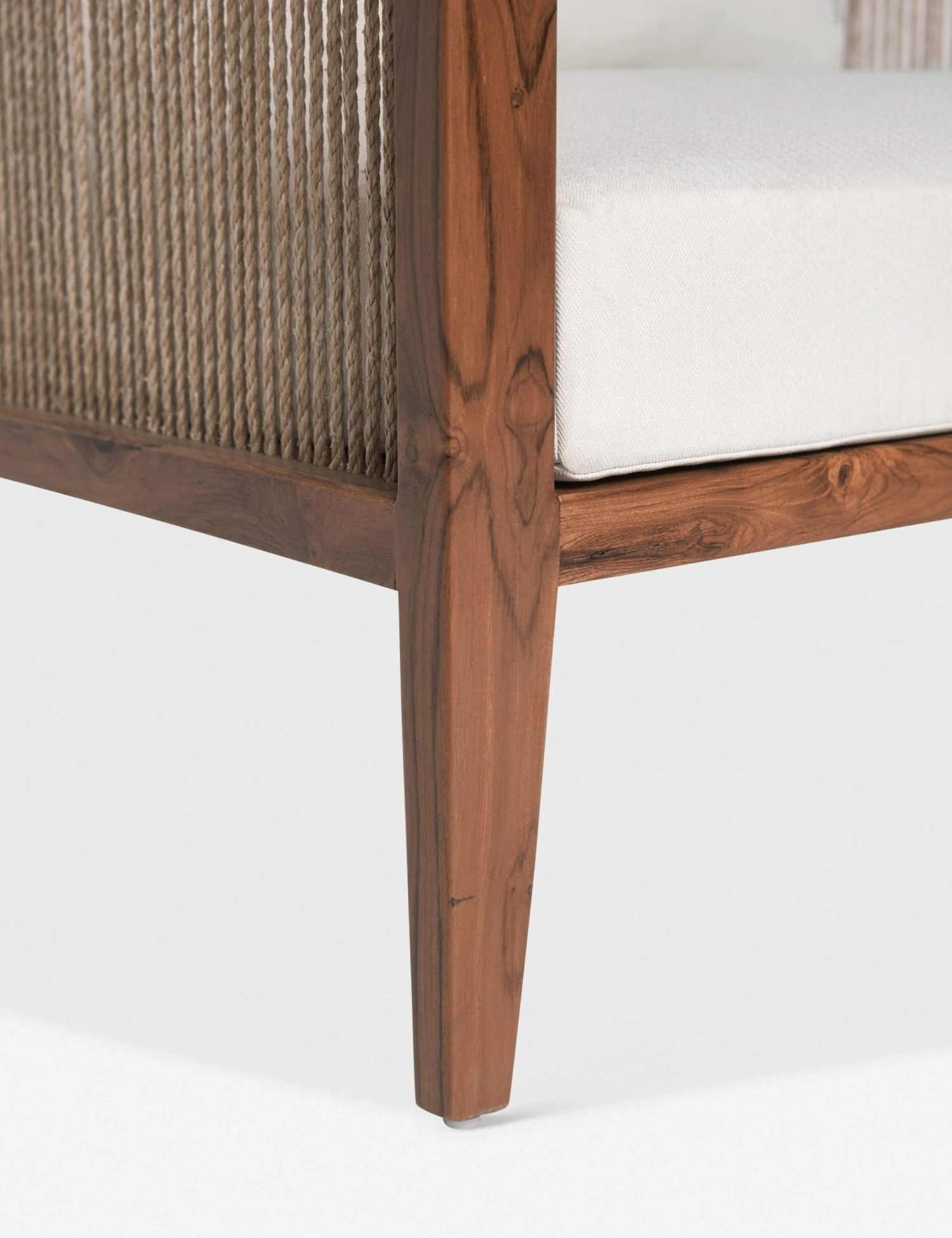 Constructed from reclaimed teak wood, and featuring durable, easy-to-clean upholstery, this comfy decorative chair layers in a polished and practical touch. A warm wood finish and natural-colored fabric provide a timeless constrast. We love the idea of using this accent chair to relax poolside, on your terrace, or even in your sunroom.