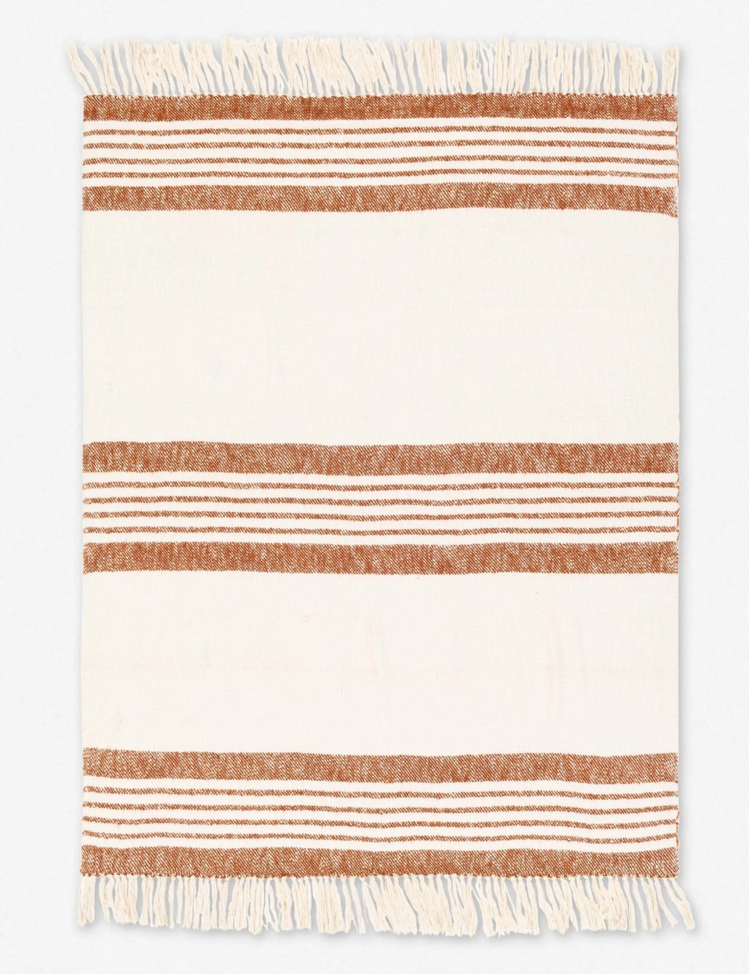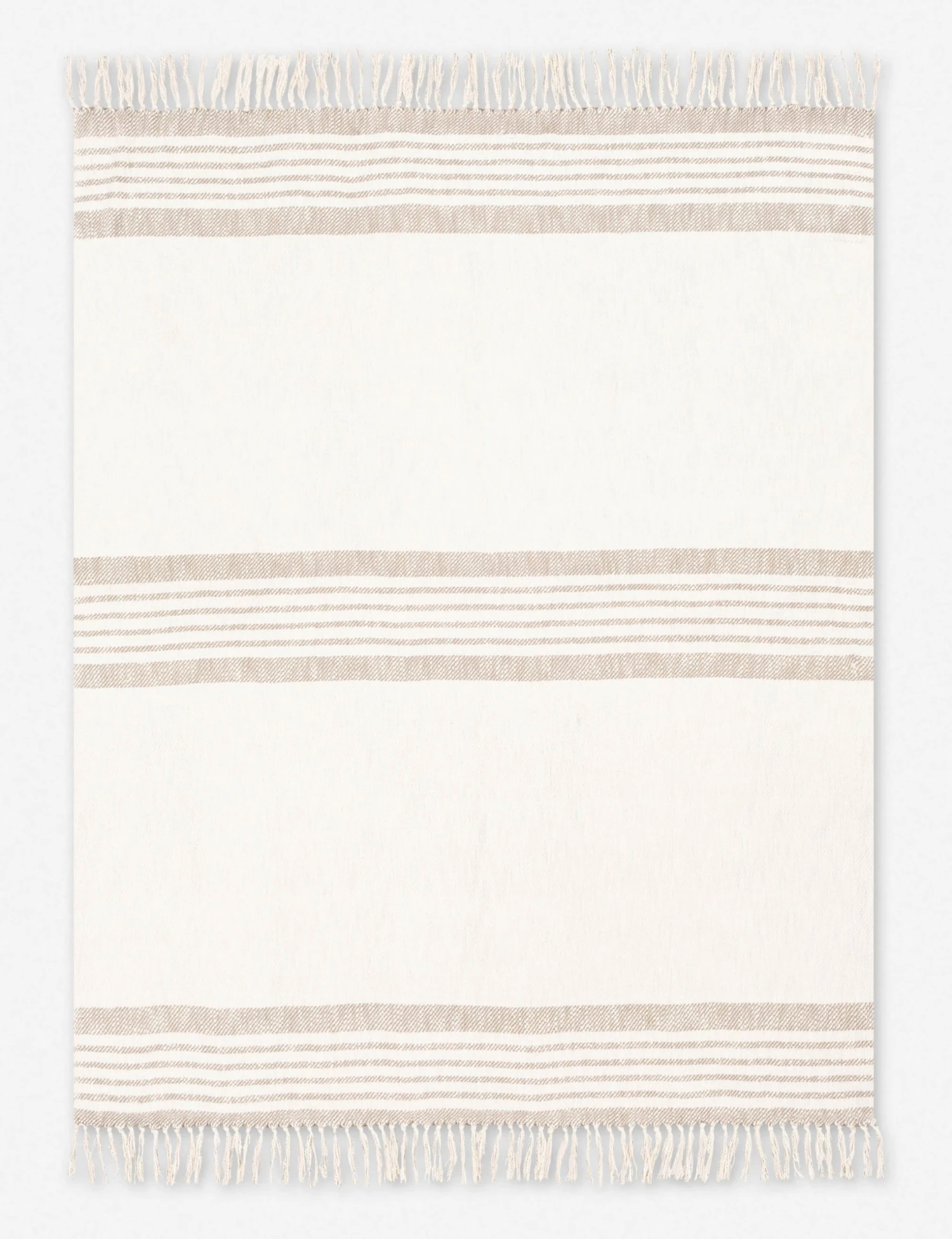 Woven with a two-tone stripe and fringed ends, this throw blanket is a cozy classic. The neutral palette offers an easy charm that we love for living rooms with a contemporary-farmhouse aesthetic.