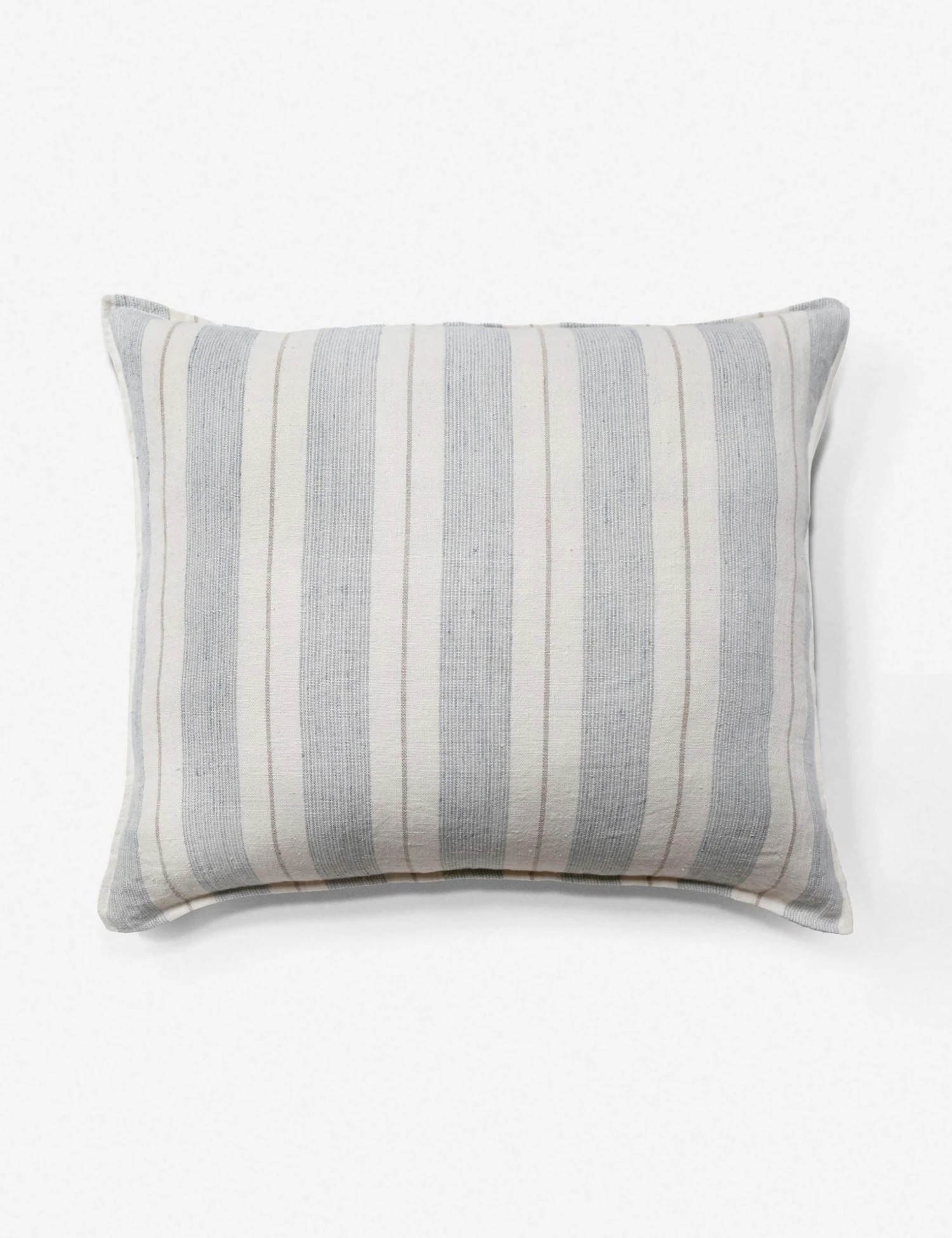 Who doesn’t have a love affair with stripes? Hand-loomed from 100% linen, the Laguna pillow exudes casual class with neutral hues for versatility, alternating thick and thin stripes for movement and visual intrigue, and frayed edges for a touch of texture.