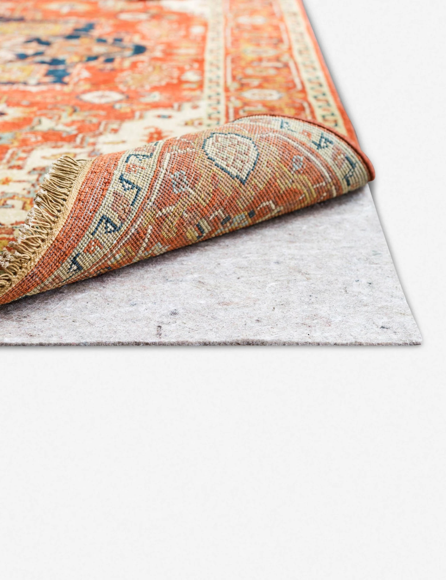 Our L & G Premium Rug Pad prevents slipping on both wood and tile floors, extends the life of your rug by protecting against general wear, and great to add for a little comfort under your feet. Recommended to use with handmade, and vintage rugs. Textured felted front surface with rubber non slip backing to prevent sliding.