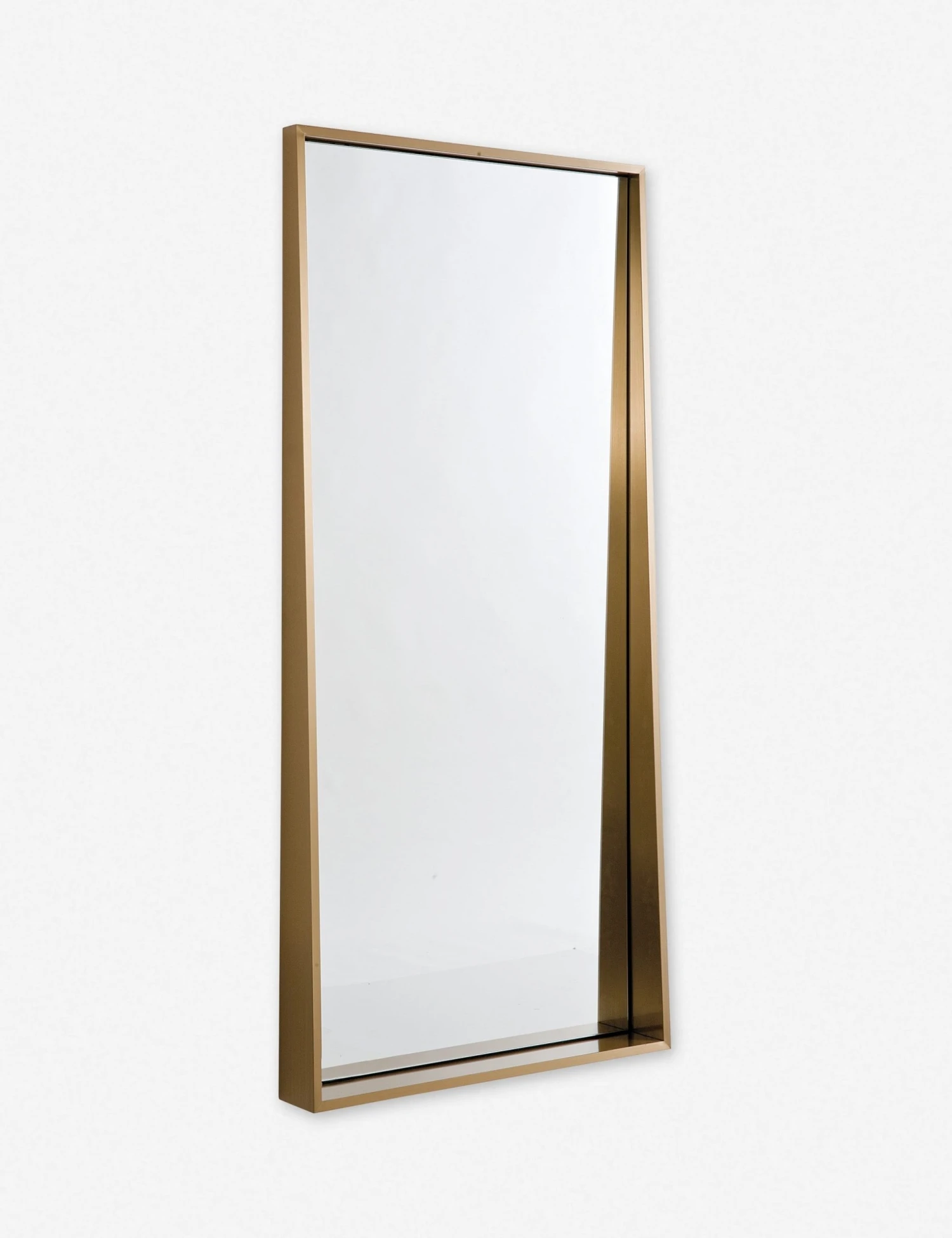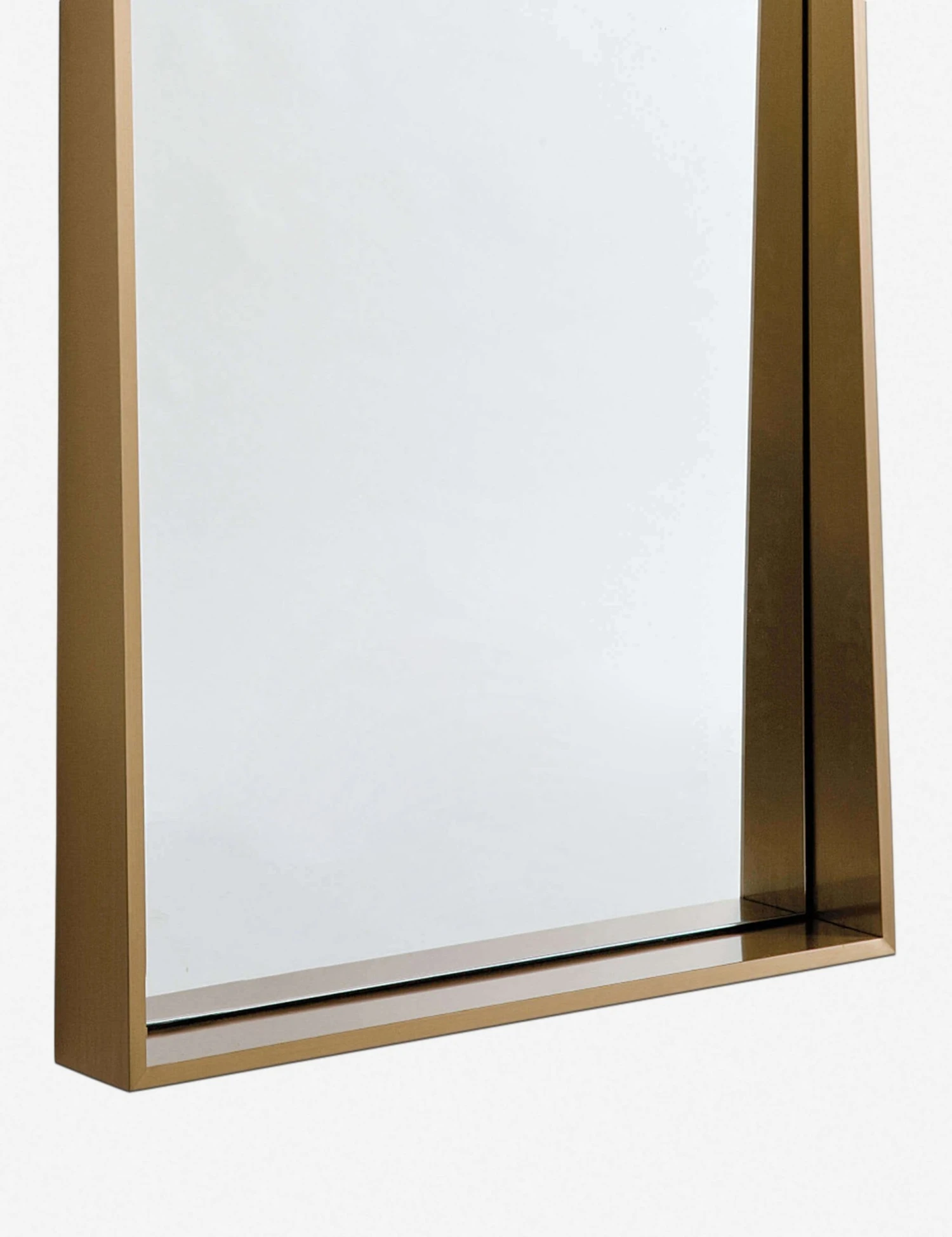 Recessed in a frame that tapers in at the top, this modern mirror adds interest and dimension to bare walls. The sleek, simple design looks great in minimalist spaces.