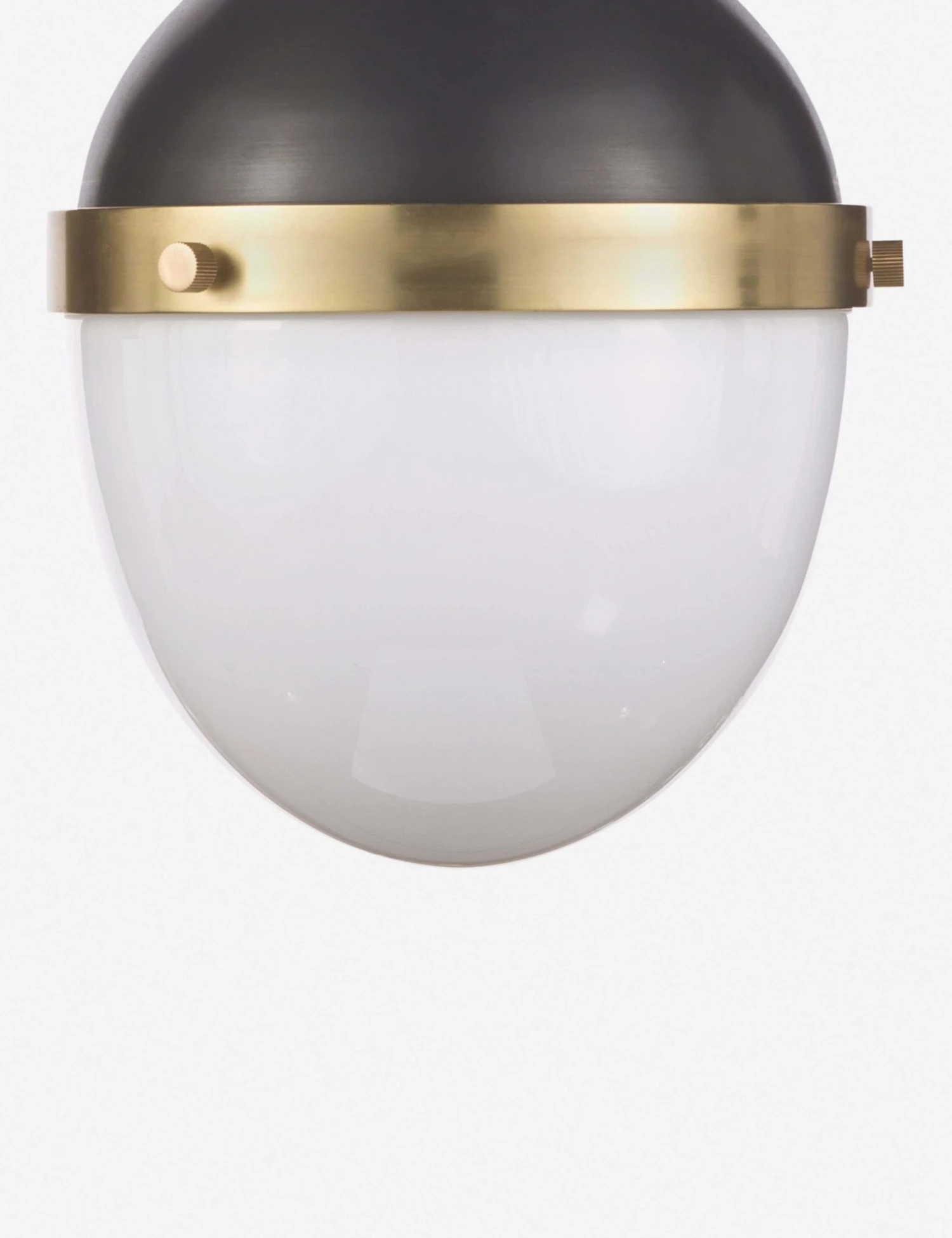 A mix of mod design and industrial elements makes this a fun lighting piece that doesn’t skimp on style. Featuring a frosted glass globe shade, topped with iron and brass detailing, our stylists are doubling (and tripling!) up to maximize its impact over kitchen islands and long dining room tables.