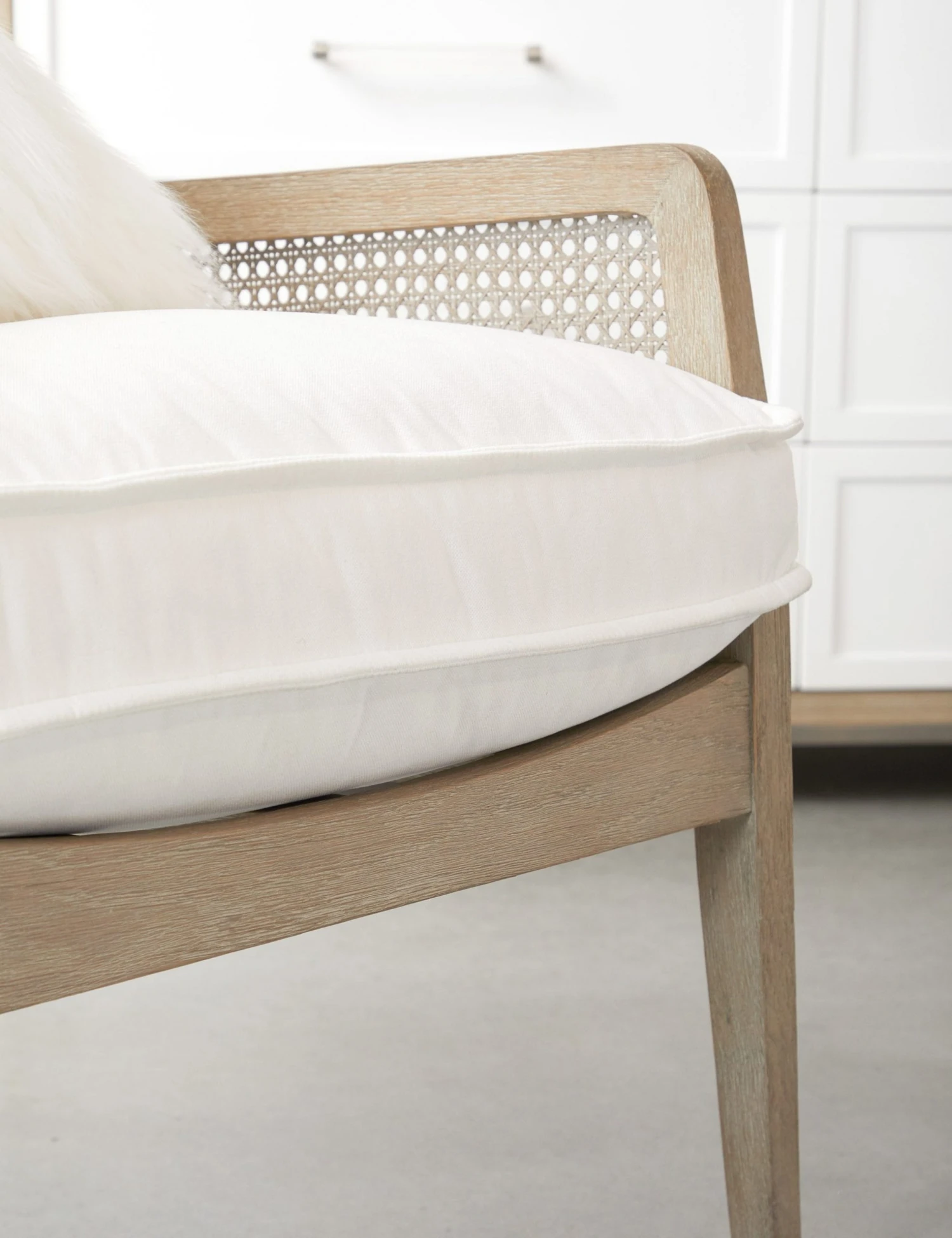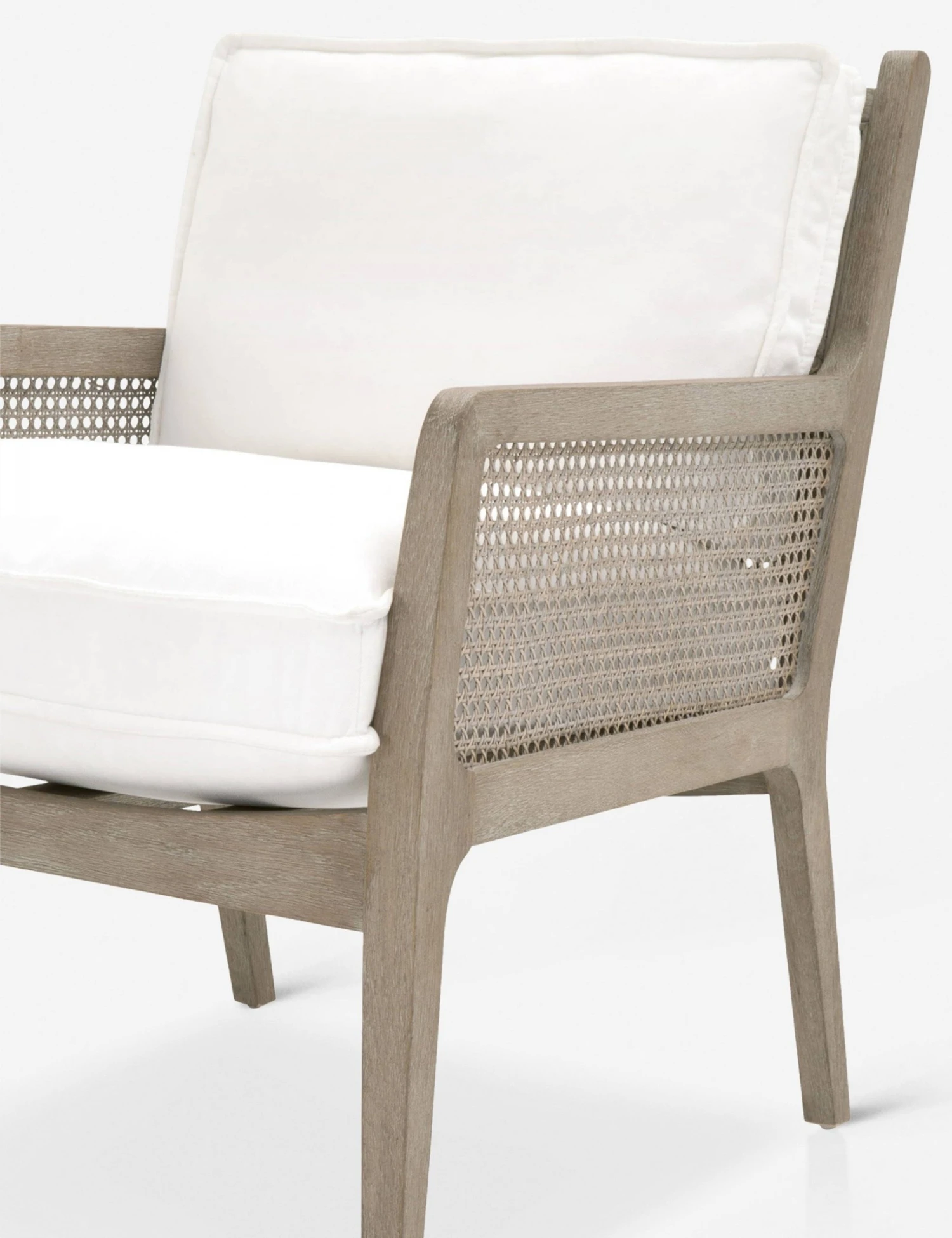With its show wood frame and plush cushions, this accent chair seamlessly adapts between room styles. Style it besides the sofa or use two next to your bar to foster easy conversations. In a subtly gray finish, its solid oak frame is finished with upholstered cushions in a white performance fabric.