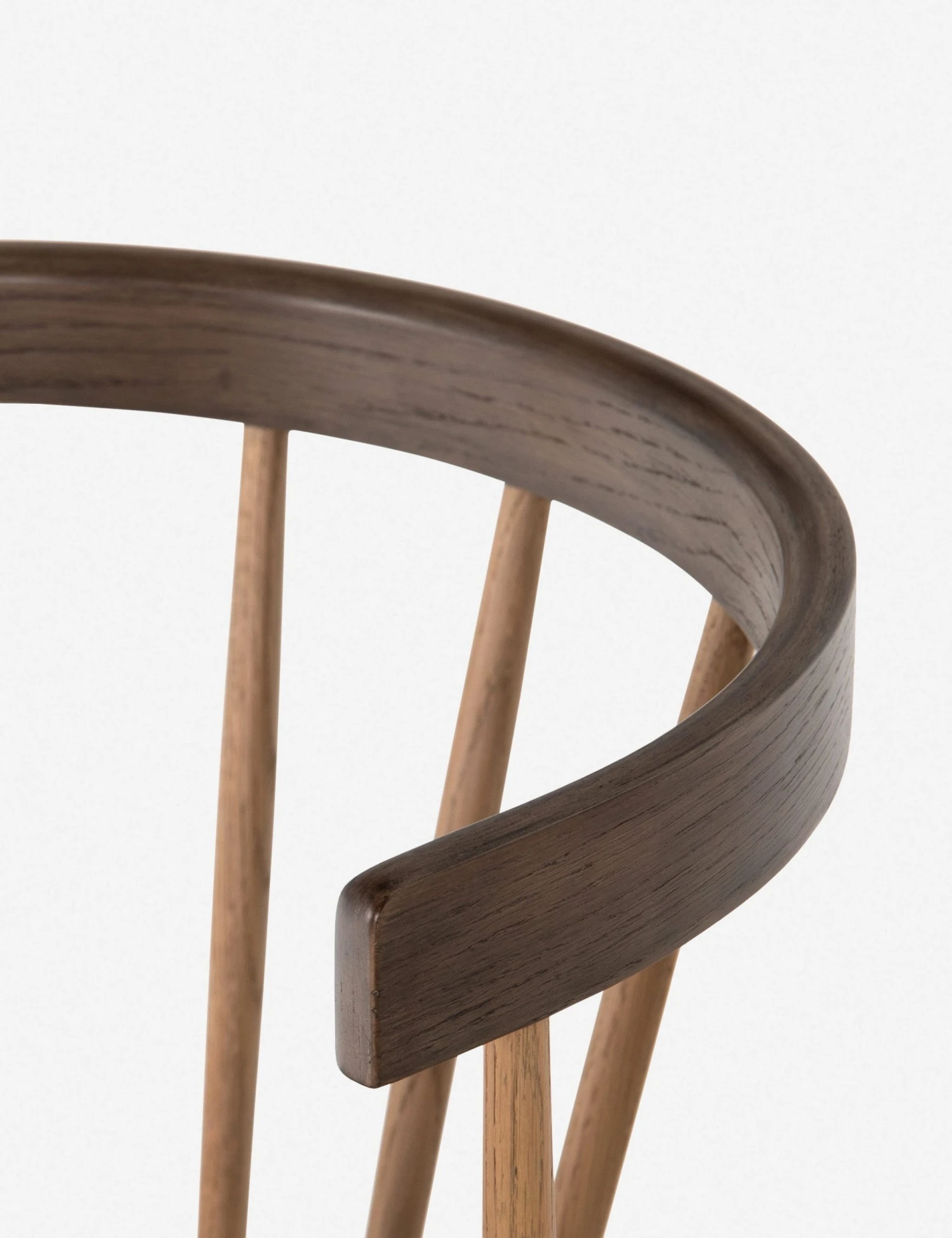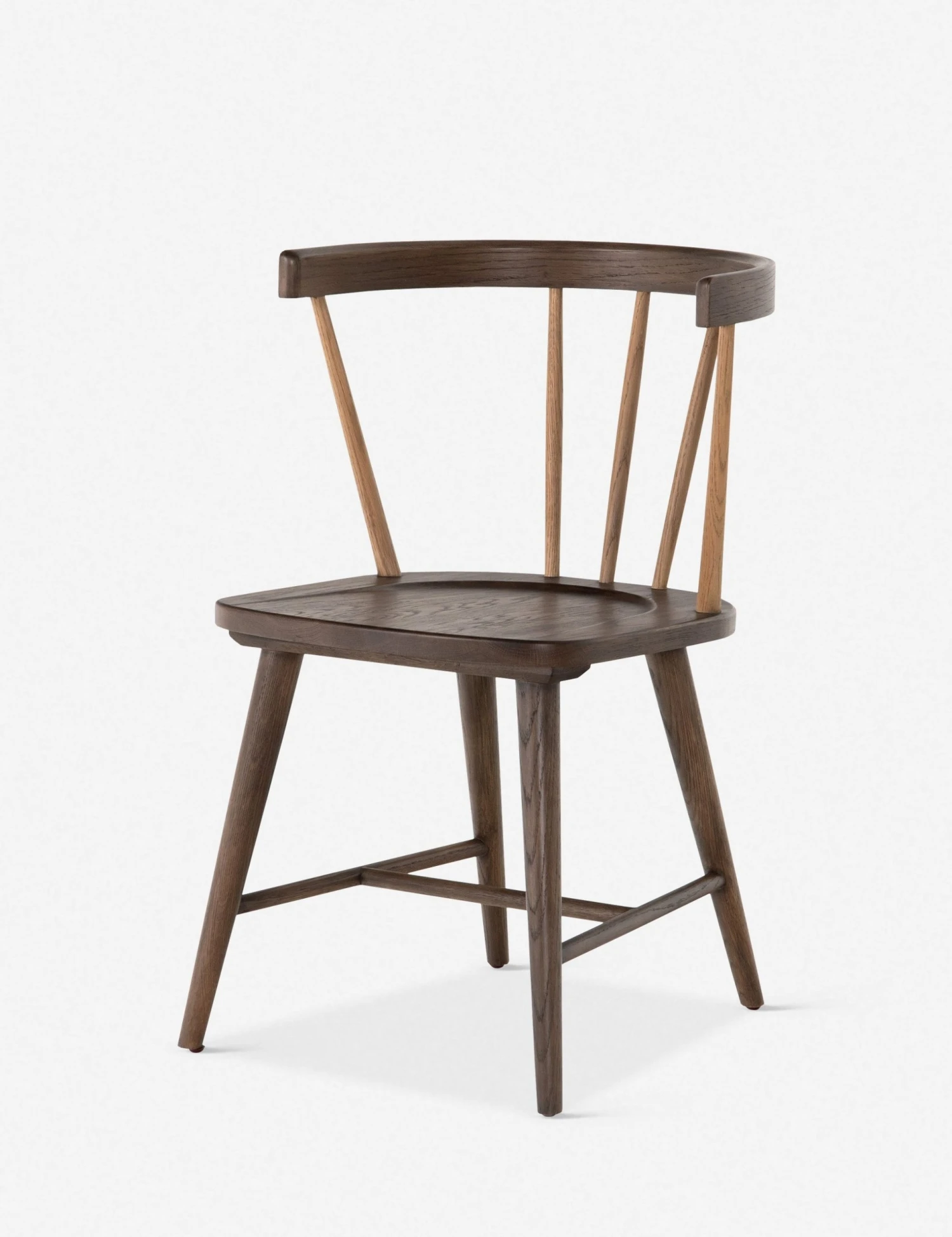 In a two-toned design, this dining room chair is a striking and fresh take on traditional Windsor-style seating. Crafted from solid oak wood, its natural-colored spindles beautifully constrasts its cocoa finish. We love sitting this dining chair with a natural oak table and neutral tableware in moody hues.