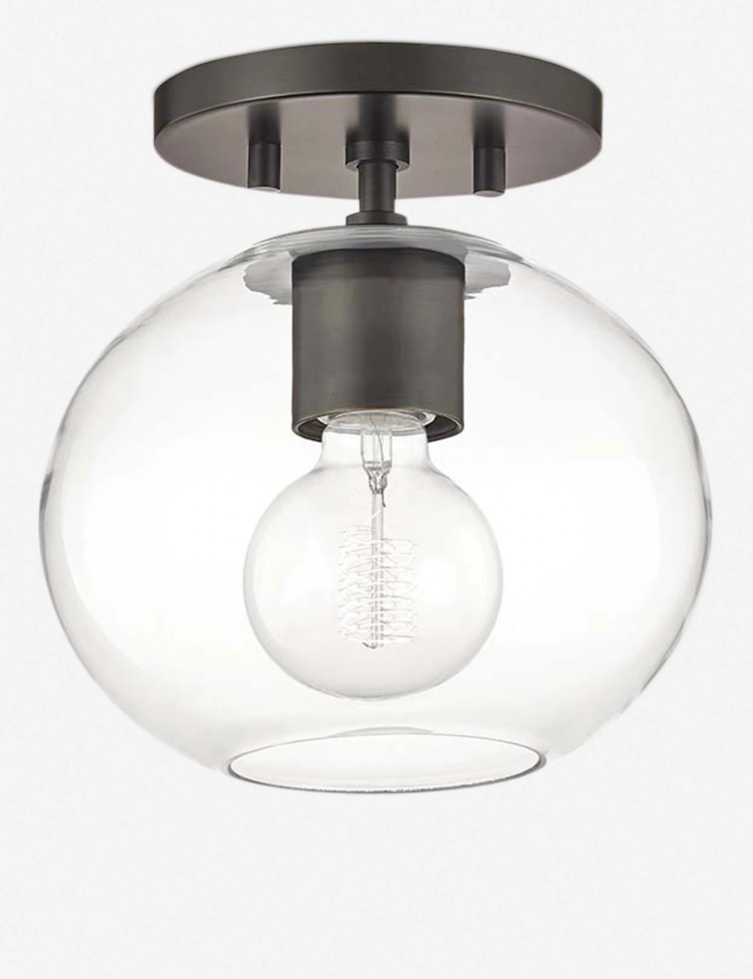 With its straightforward minimalistic design, the Robbie’s spherical glass shade and antiqued bronze base adds modern character to a room. Its sleek and simple form stands up to a variety of styles without overpowering the aesthetic.