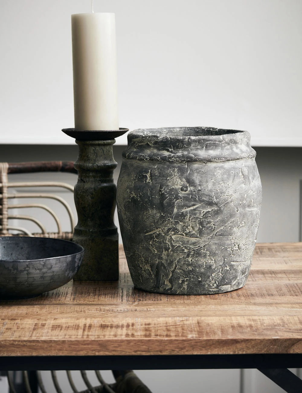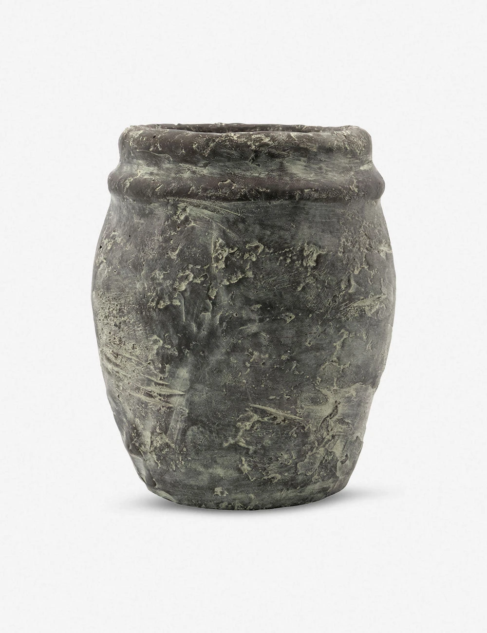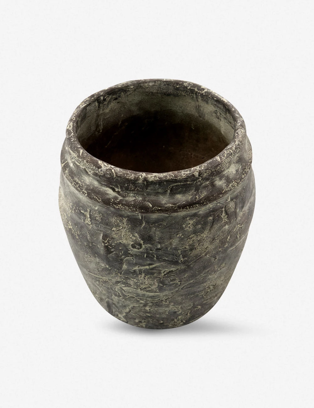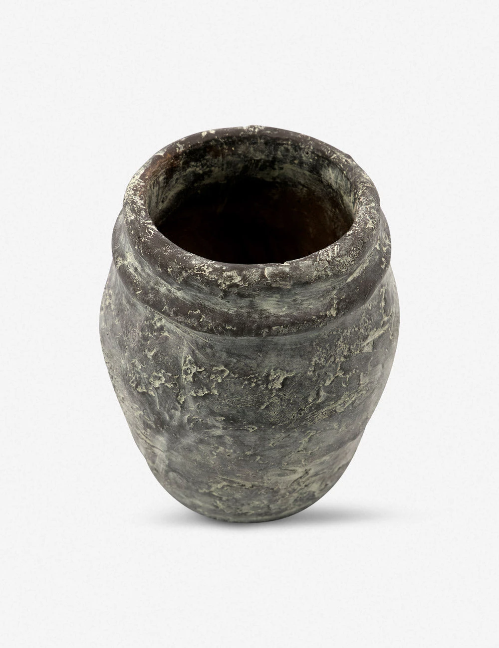 This handmade planter features a textural finish to inspire a vintage patina for your entryway decor or a tabletop vignette. Style as-is for a standout sculptural vase, or insert the included plastic lining to create a fresh floral display.