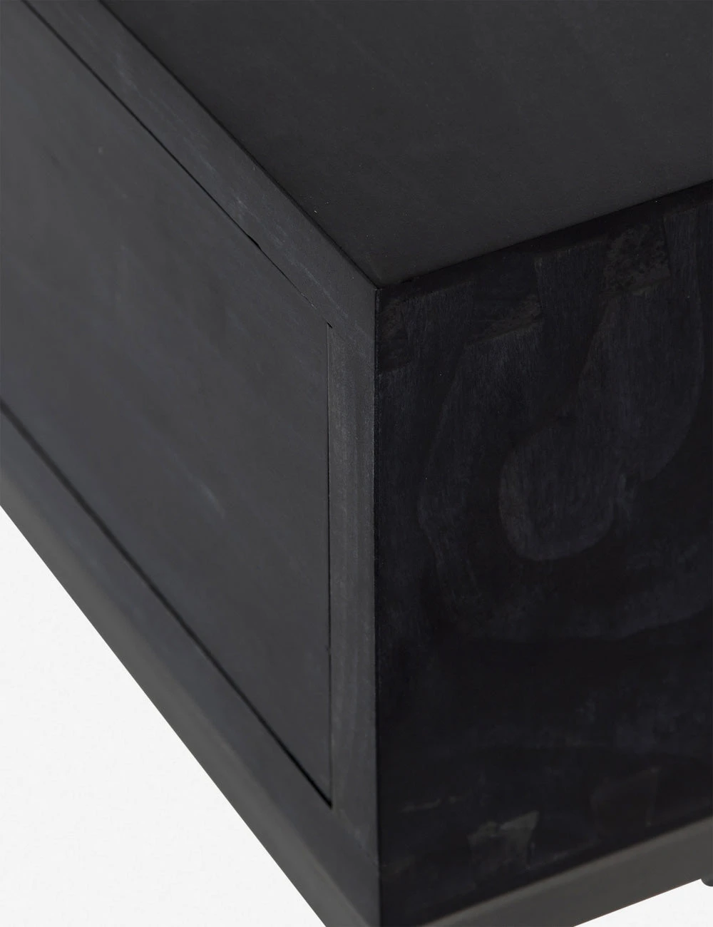 Keep your living space or entry grounded and modern with this sleek console table. With a beautifully essential silhouette, this poplar wood sofa table features elements of mid-century aesthetics like a slim iron base, top-grain leather drawer pulls, and an open shelf for an effortless touch.
