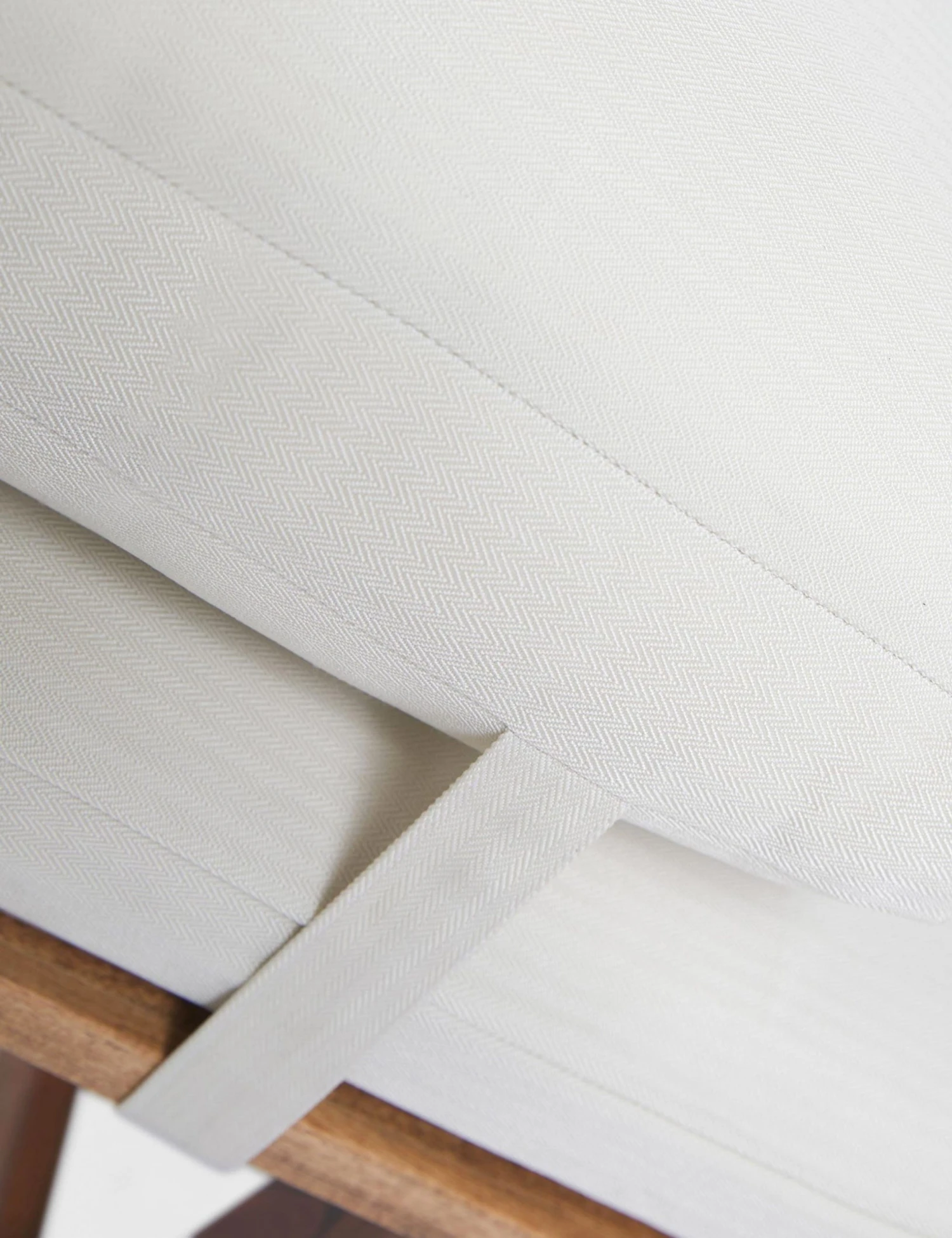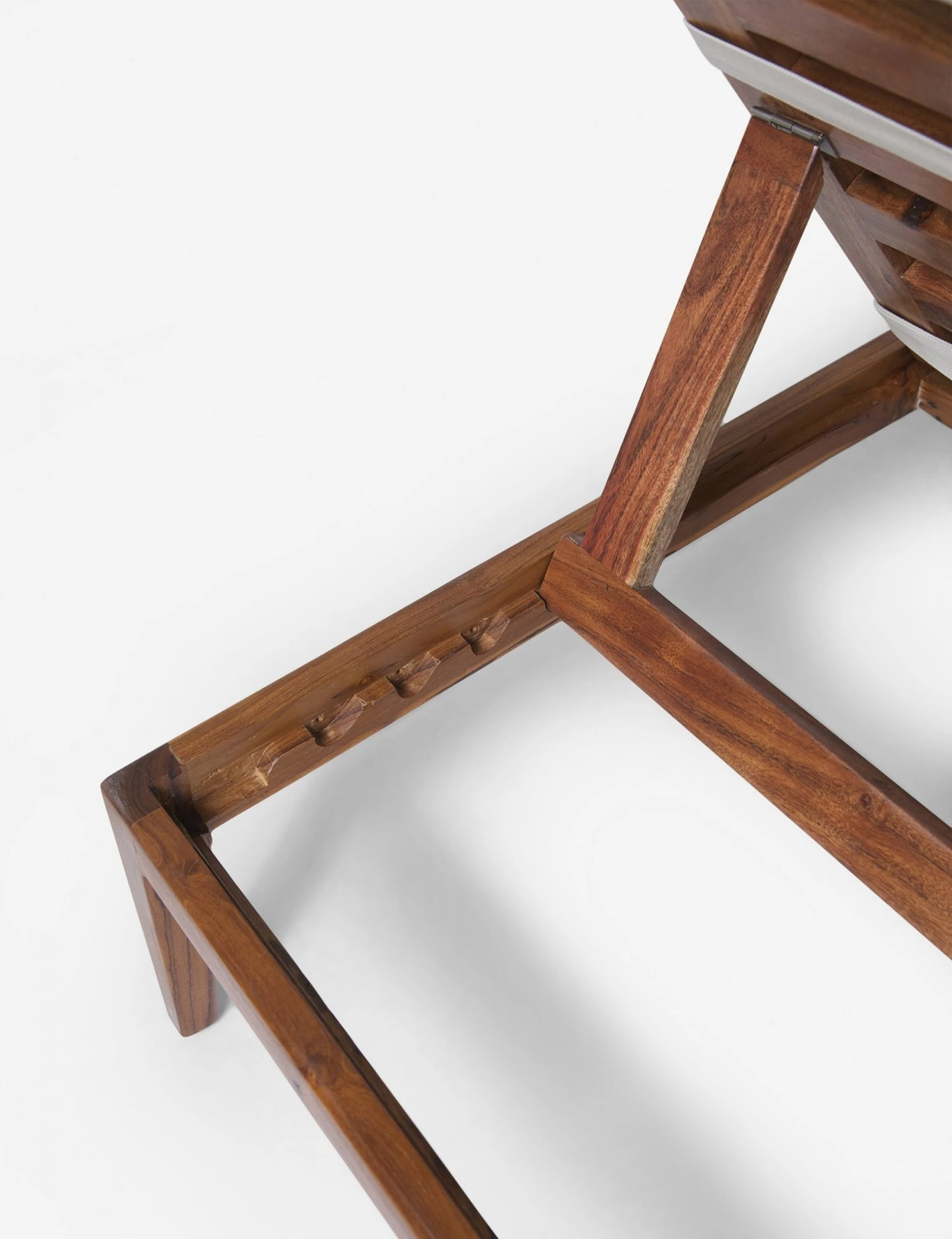 Constructed from reclaimed teak wood, and featuring durable, easy-to-clean upholstery, this low-slung chaise layers in a polished and practical touch. A warm wood finish and natural-colored fabric provide a timeless constrast. We love the idea of using this chaise sofa to lounge poolside, on your terrace, or even in your sunroom.