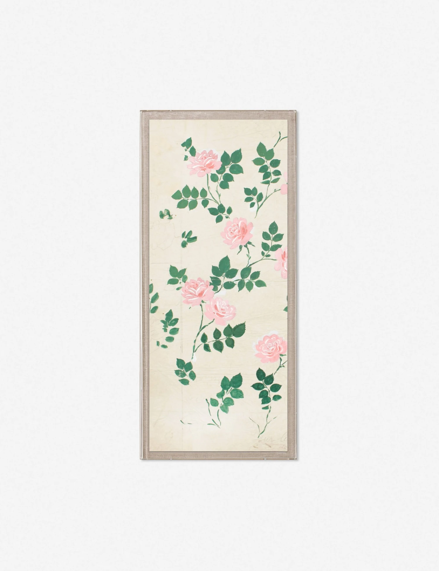 Delicate rose stems fill a soft-colored backdrop in this wall art print from Paule Marrot’s Roses series. Marginalia and blots of color imbue the work with a sense of the artist in process and complement a feeling of open elegance. Styled alone or in a gallery art wall, this piece will offer a beautiful lightness to your space.