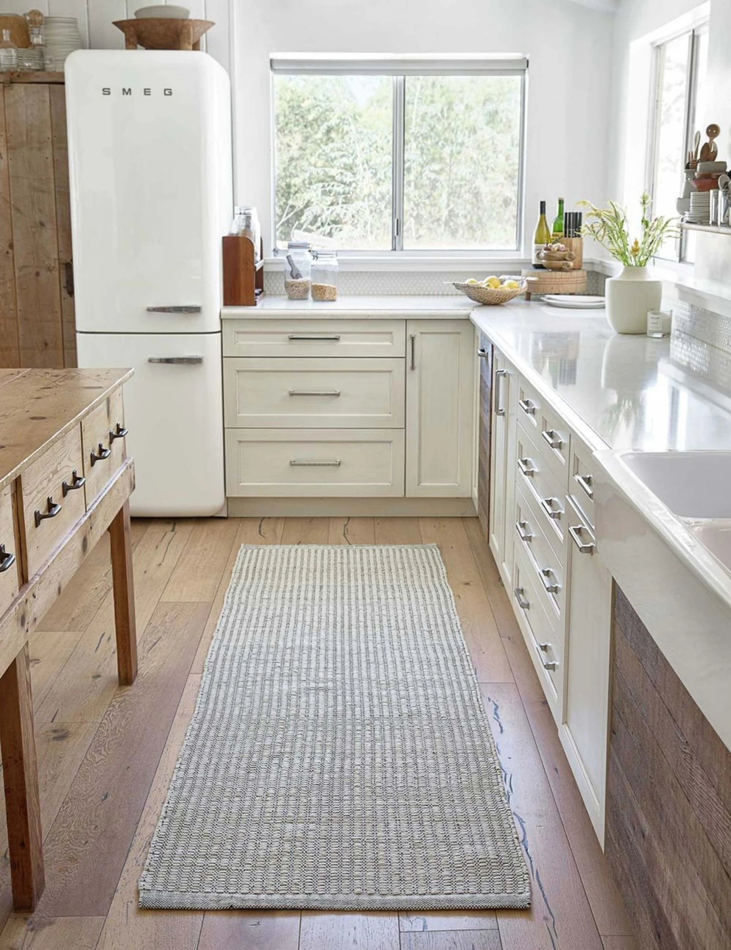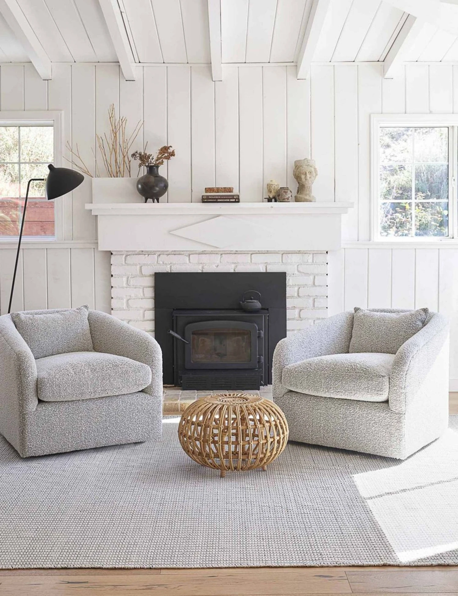 The neutral stone gray hue and textured construction on our Roxen Rug make it an ideal addition to a minimalist-designed home. Mix in soft colors and natural materials like oak and rattan for a pretty, understated look.