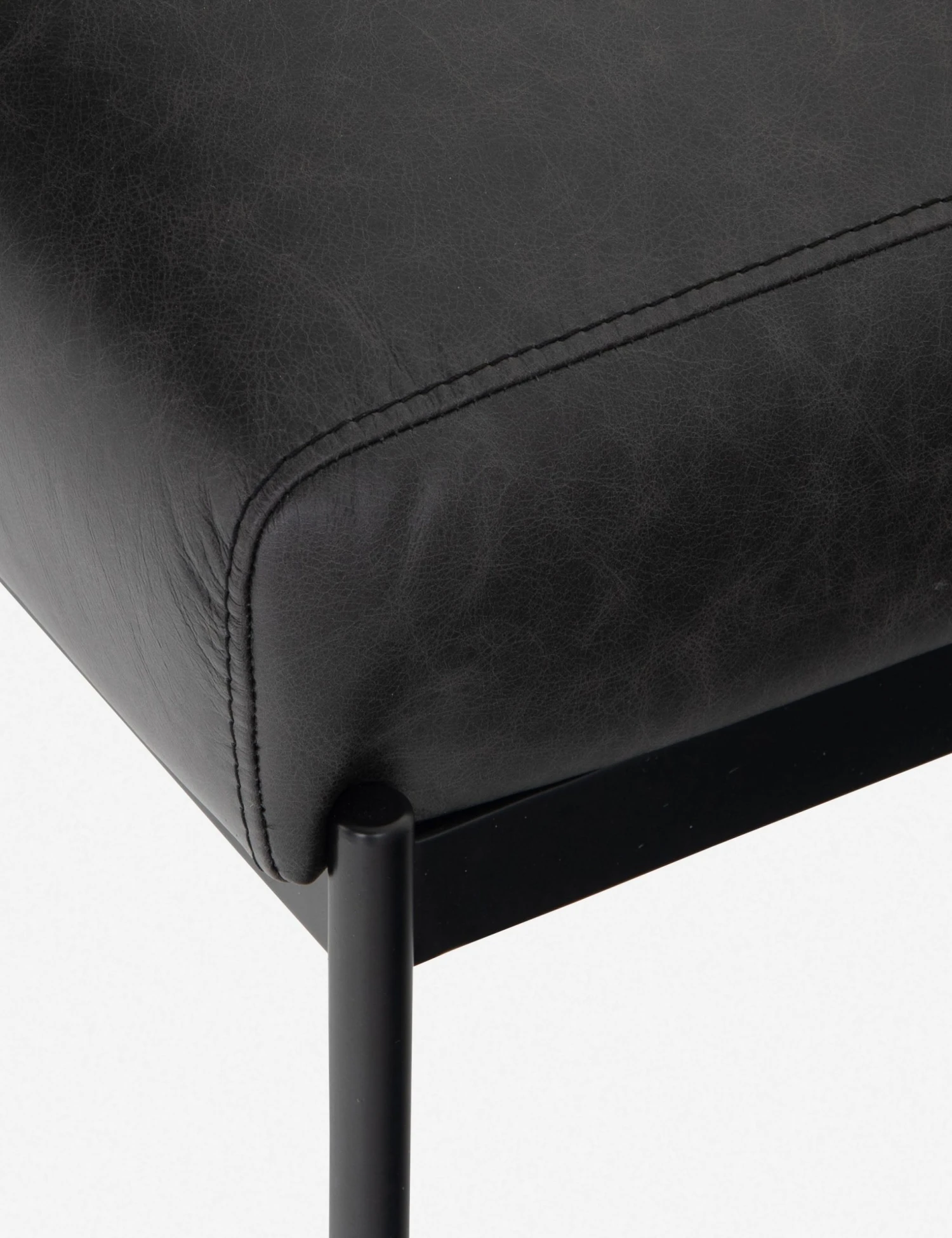 With its sleek and sophisticated leather and iron construction, this dining room chair brings an effortless cool to your space. A plush seat upholstered in buttery top-grain leather is lofted atop a slim-lined, blackened iron frame. We love sitting this dining chair with dark wood finishes and monochromatic graphics.
