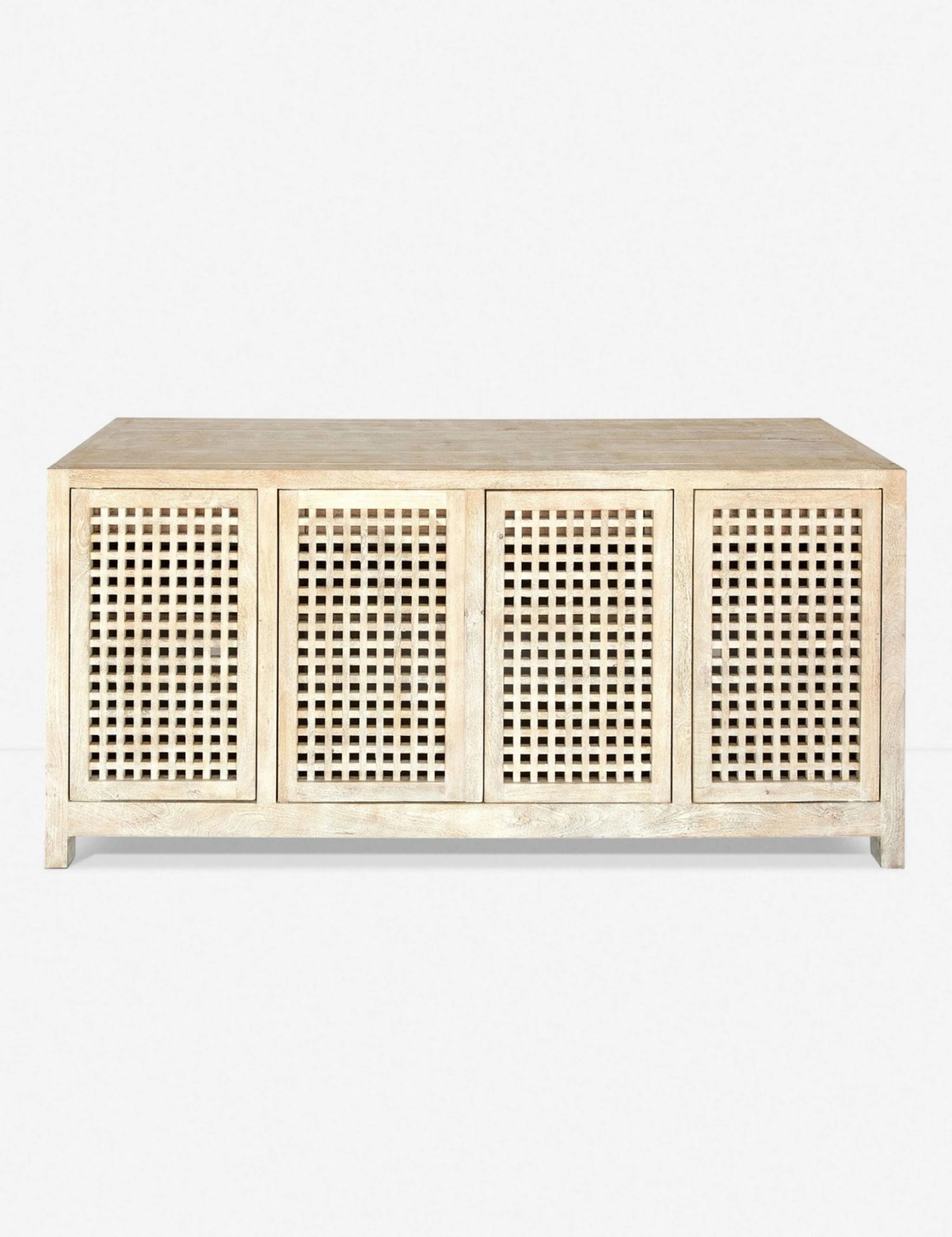 A functional and beautiful sideboard that’s perfect for coastal living spaces. Finished in a creamy light-wood shade, we love the subtle contrast in texture from the lattice cabinet doors. Adjustable shelves, drawers and convenient cutouts make it a must-have pick for your coastal media room.