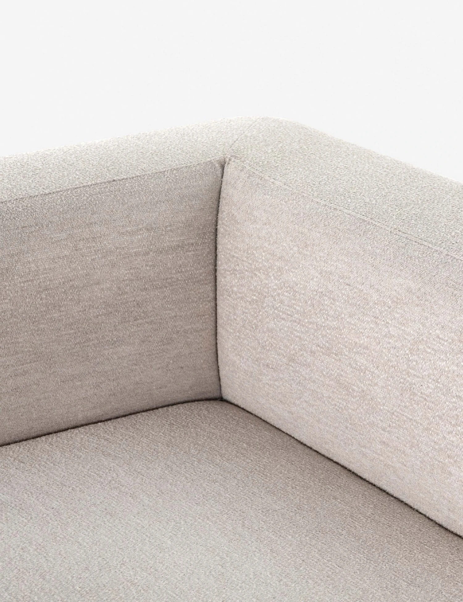 A plush tailored design wrapped in high-performance fabric with a softness resembling a blend of boucle and linen makes this sectional sofa a refined touch of modern comfort. A deep chaise seat design lends this sectional an inviting, relaxed profile to lounge on. Style with natural textures and organic accents for a cozy California feel.