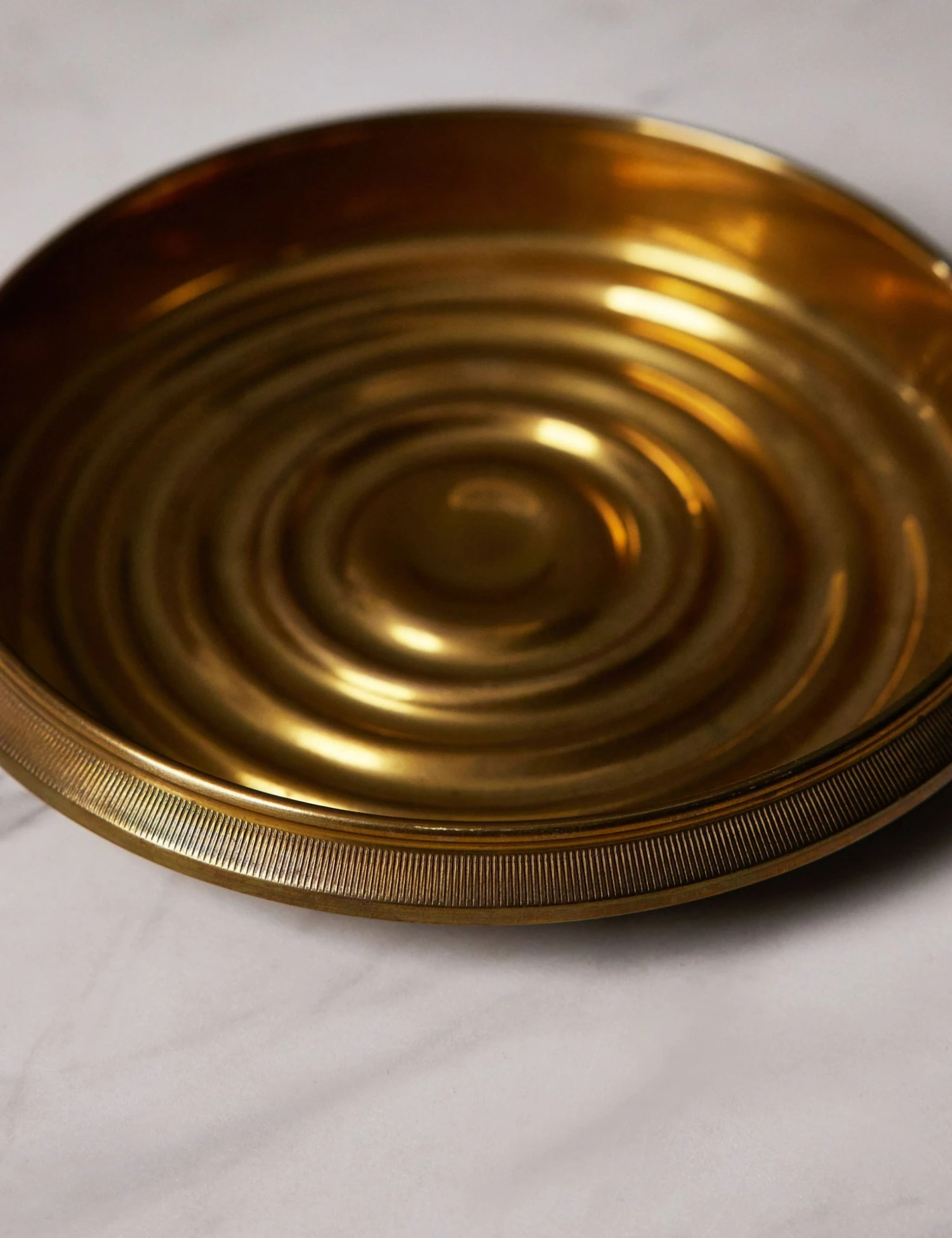 Bring a lustrous layer of texture to your console table or bar. Full of artisan detail like rippled lines and a coin edge, this brass bottle coaster is a luxe touch with practical appeal. Perfect for larger glassware like bottles, pitchers, and carafes, or as an elevating element in your barware decor.