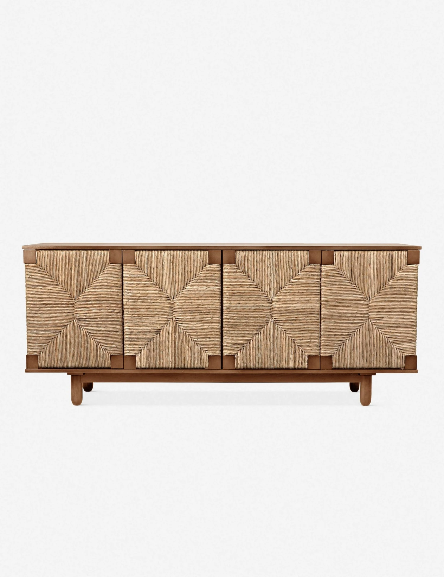 Our Sian Sideboard is a refined blend of form and function, with its layered rush seagrass doorfront detail and ample teak-based storage space inside. Allow the wood cabinet to be the anchor behind the head of your dining room table and fill it with occasional serving pieces, or set it up in the living room to play host to board games and throw blankets.