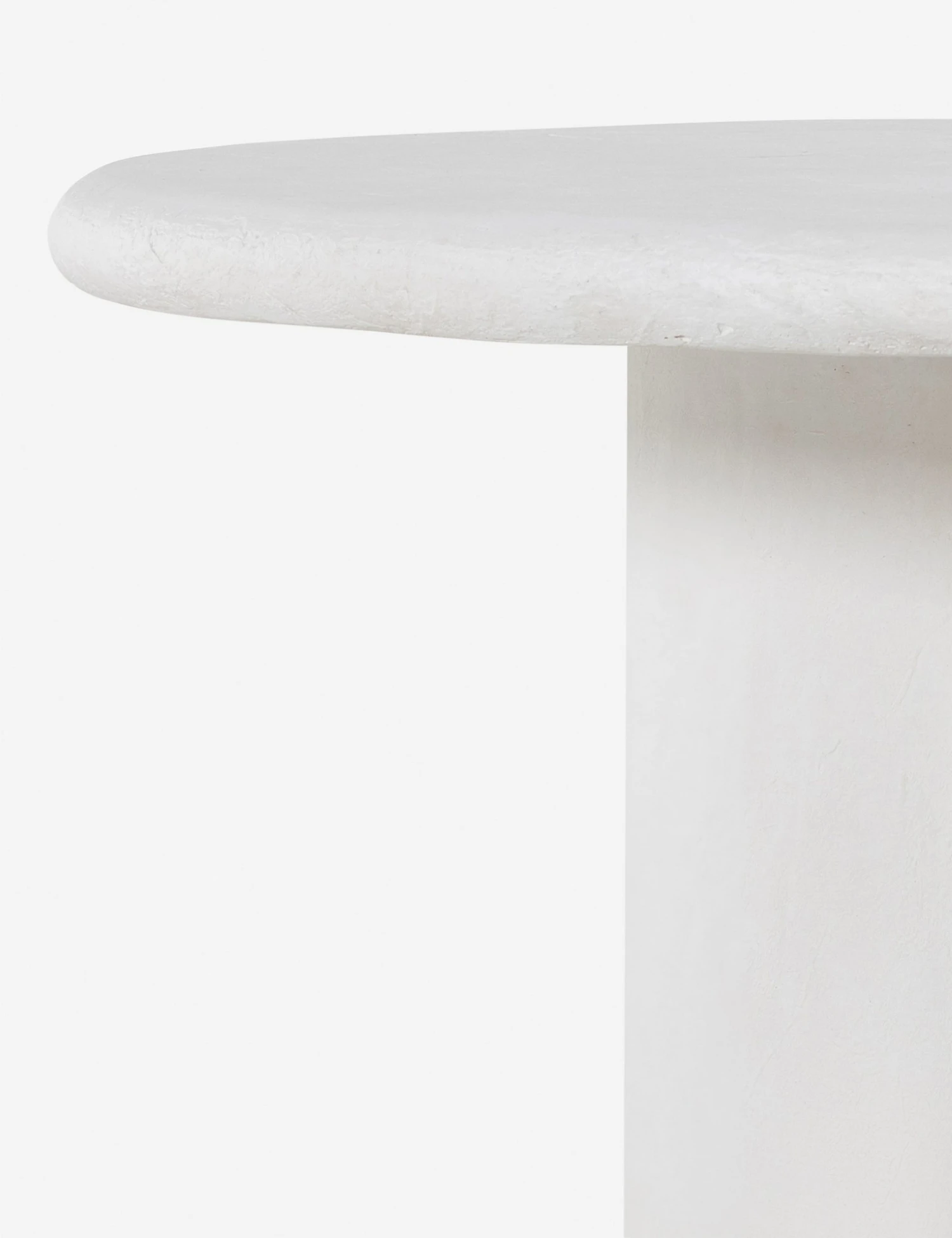The stark white finish and gentle, earthy lines of this round dining table offer up warm minimalism. Its soft, bright aspect is grounded by a polished concrete texture that would elevate any organic or artisanal aesthetic with its refined finish. We love this table in an airy space surrounded by layered natural textures, refined accents, and warm neutral tones.