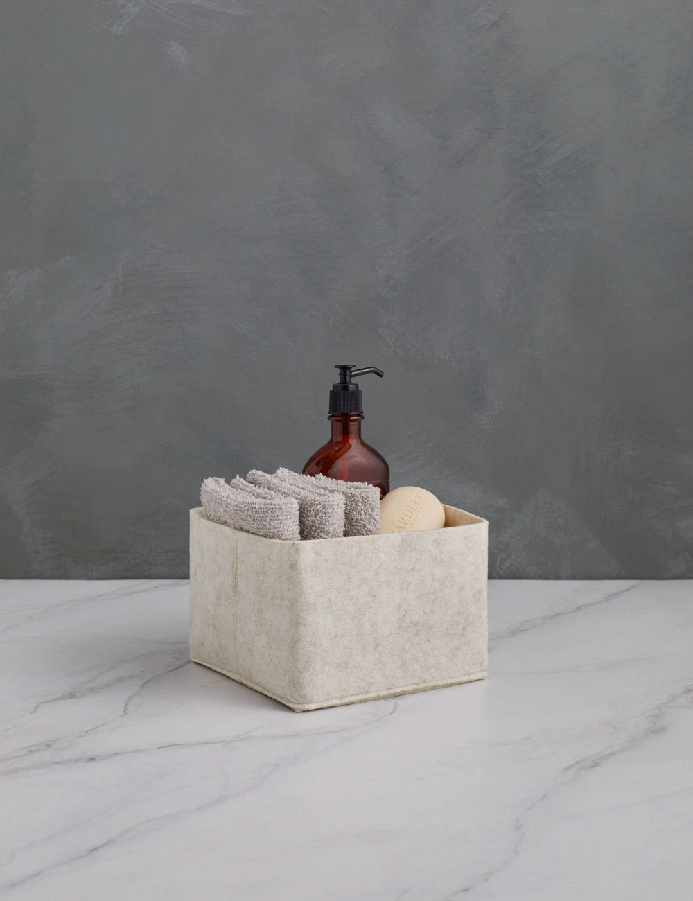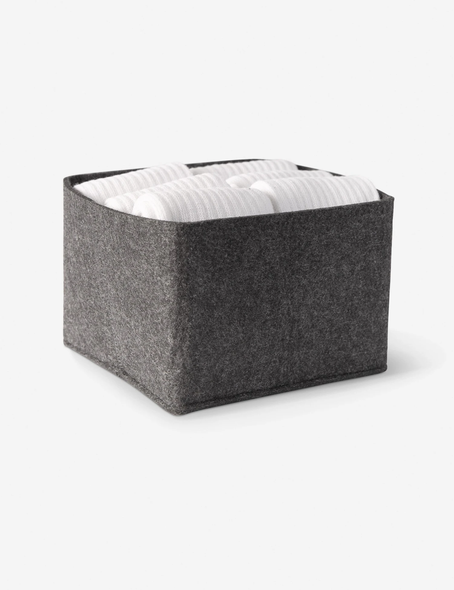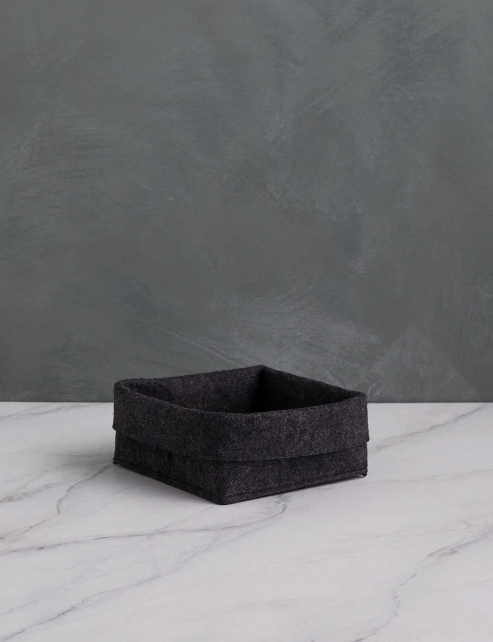 Discover flexible storage appeal with this versatile bin in a style tailored to your space. The dynamic design holds its shape but can fold over for an adjustable height so you can fit a lower profile for easy access or unfold for a taller, sleeker look—plus, the recycled felt fabric can be washed for easy care.