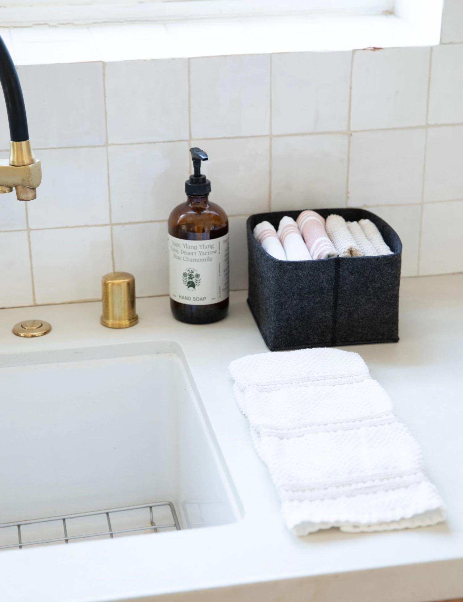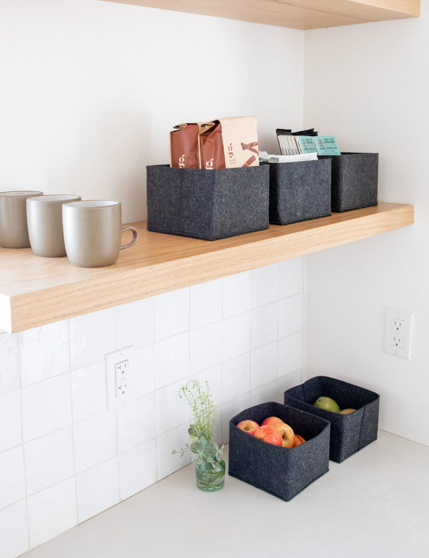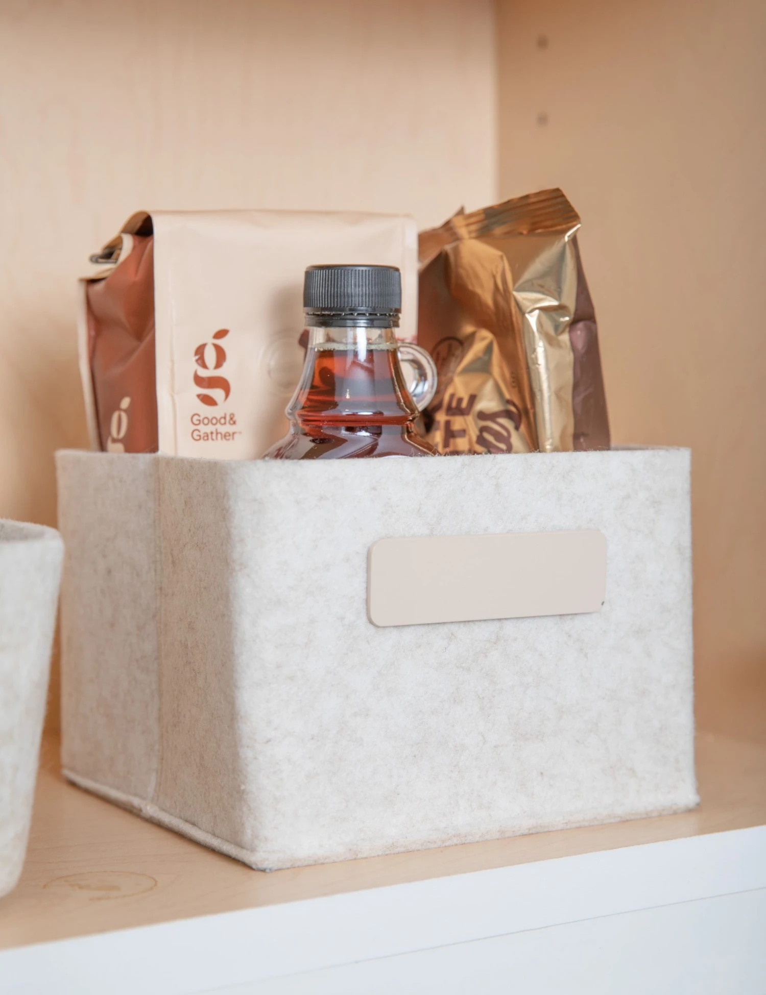 Discover flexible storage appeal with this versatile bin in a style tailored to your space. The dynamic design holds its shape but can fold over for an adjustable height so you can fit a lower profile for easy access or unfold for a taller, sleeker look—plus, the recycled felt fabric can be washed for easy care.