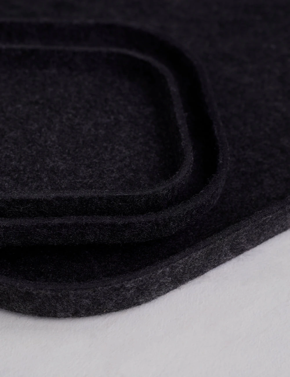 Turn your counter clutter into a thoughtful vignette with this set of trays. Each trio can nest in a tidy arrangement or sit separately, creating a dynamic and functional accent for your counter, vanity, or tablescape. With a solid form and soft felt touch, these trays can be hand washed or spot cleaned for easy care.