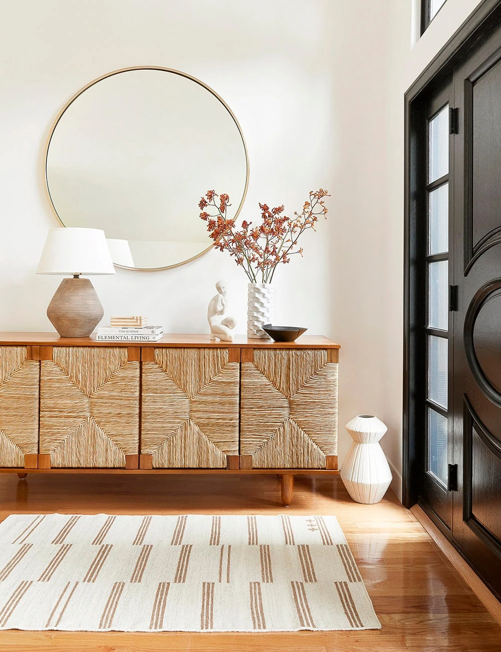 With its narrow, offset stripes and subtle color palette, the Stripe Break Rug adds casual, minimalist style to a light and airy room. The Sarah Sherman Samuel Collection features tonal textures, earthy hues and a modern take on traditional patterns.