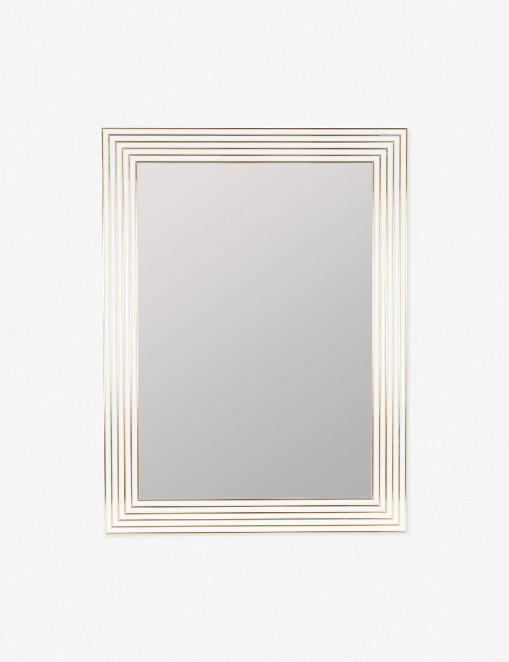 Gold and white bands bring a polished tone to this decorative wall mirror. With its deco design notes and bright appeal, this stylish mirror offers an elevating addition to a curated aesthetic.