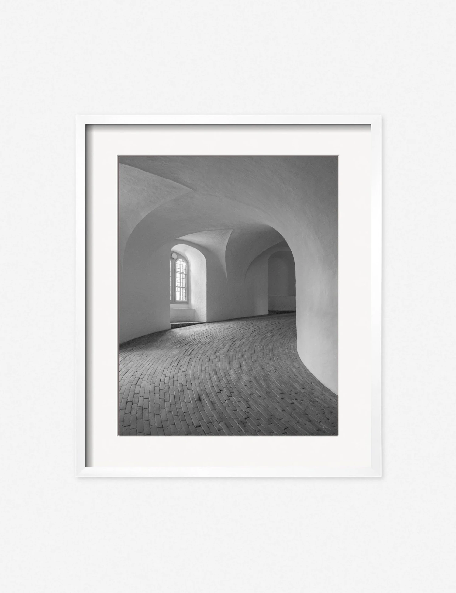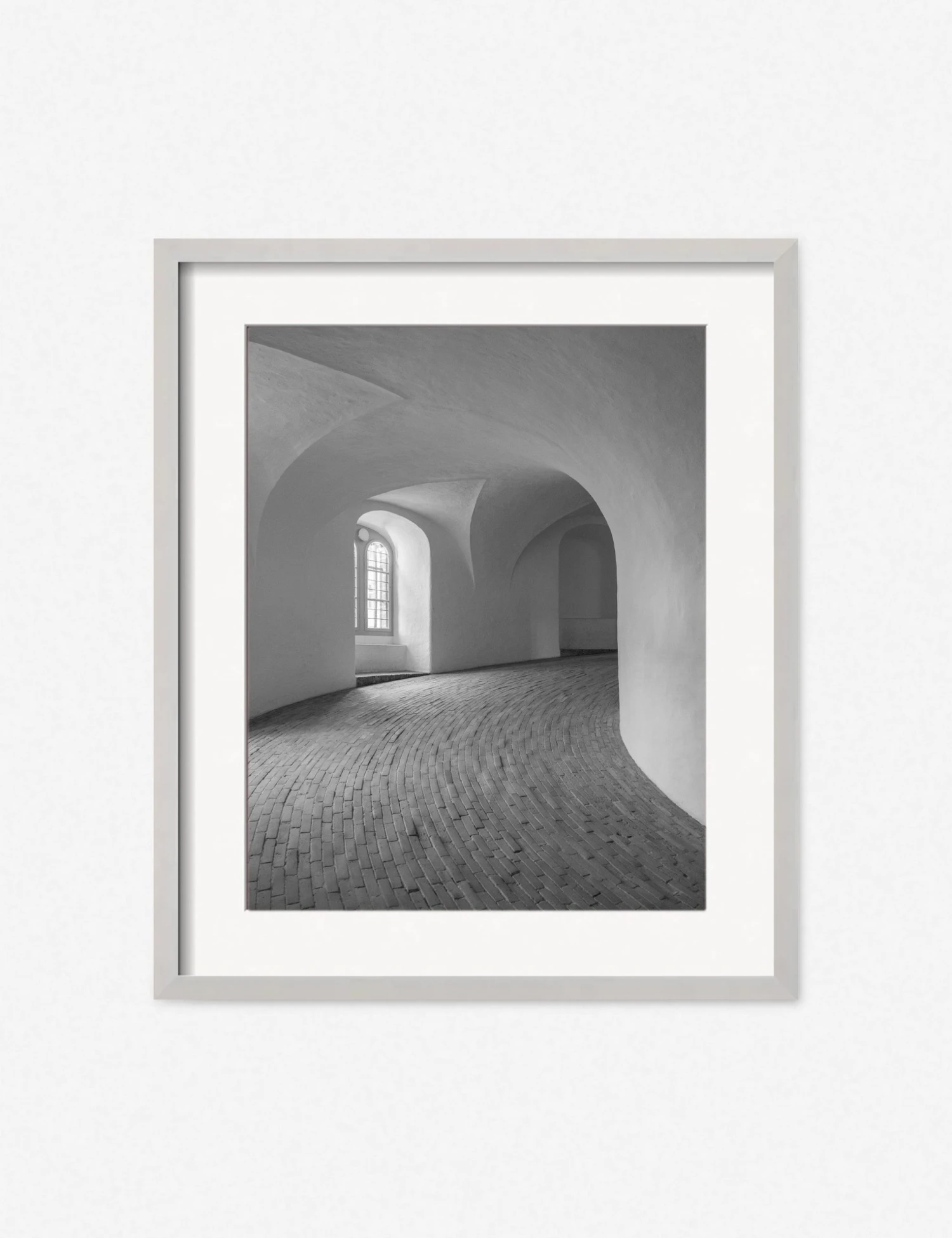 Carley Rudd travels the world, capturing tranquil scenes that evoke a feeling of visual escapism and an appreciation for our shared world. This selection of wall art photography features minimalist compositions and soft, natural hues that will bring a serene balance to a curated art wall decor. Smooth, crisp lines create sculptural layers contrasted by a cobblestone floor in this architectural study of form and movement