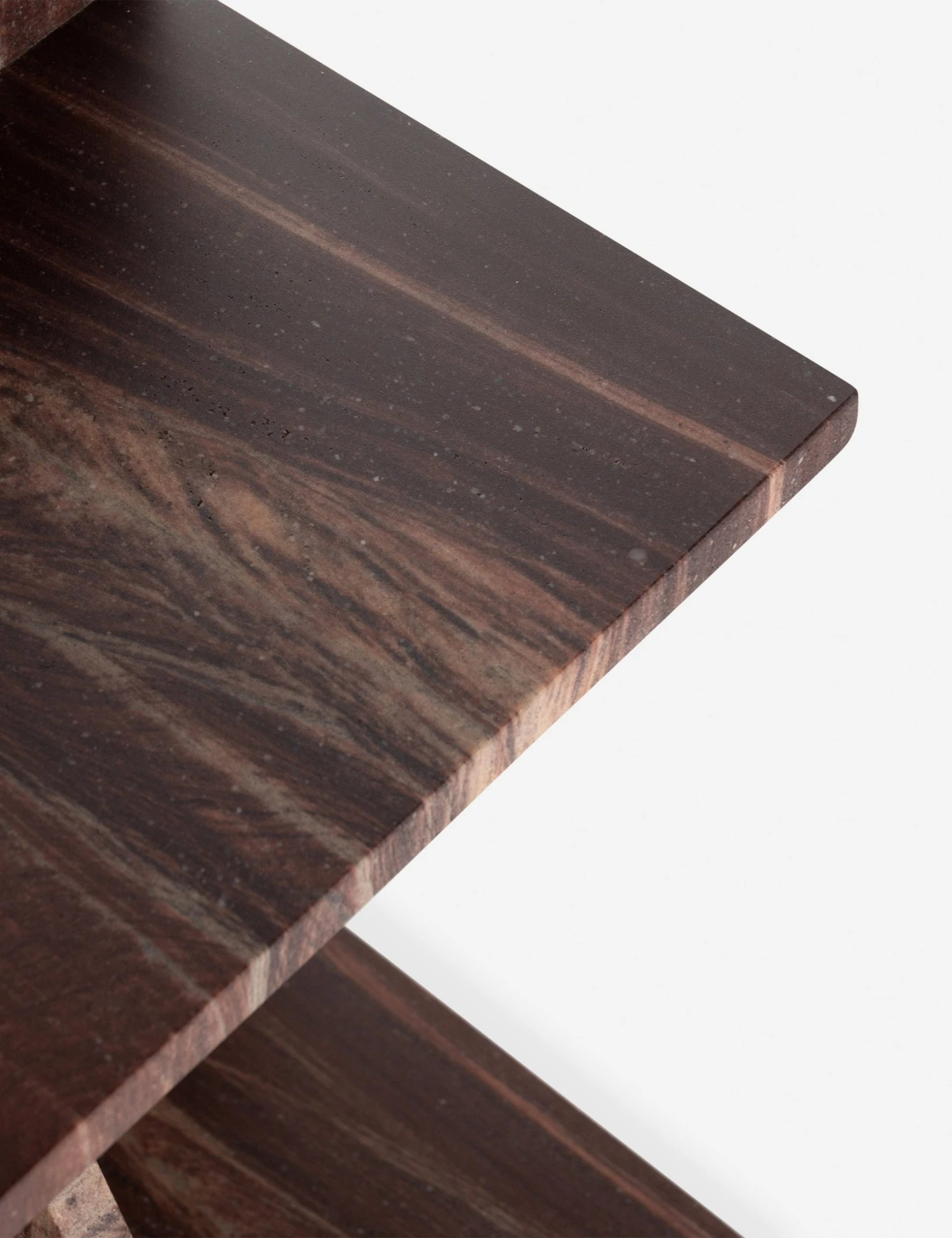This side table offers up angular appeal with its sculptural design. Made from solid marble, each table features a unique pattern of stellar striations in rust and grey hues. Style this luxe end table in a cozy, modern space to add a geometric accent with textural contrast.